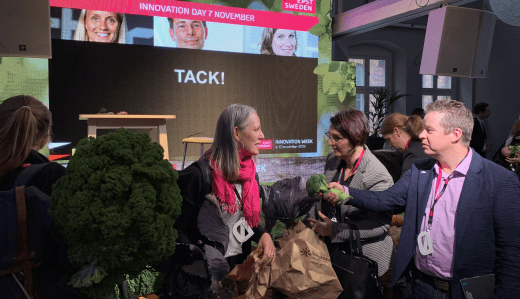 … Scenen är pyntad med ätbar grönska som publiken får plundra och ta hem efteråt.