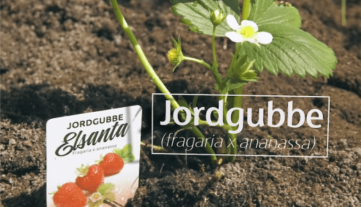 Glad midsommar önskar Språng med fingrarna i jorden och en liten, liten jordgubbe.